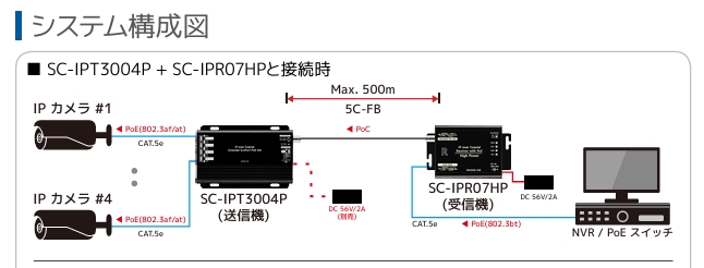 4-in 1-Out PoE送受信機セット